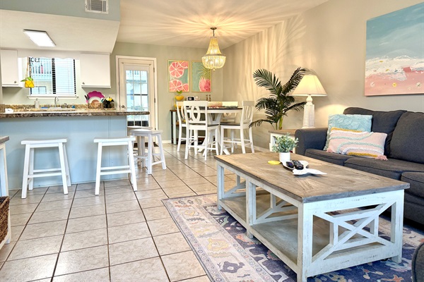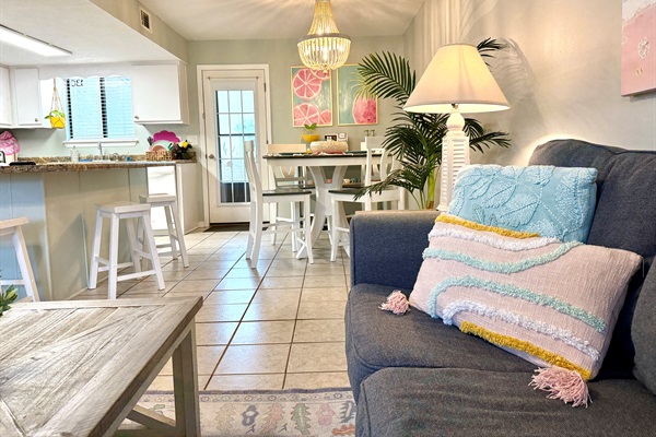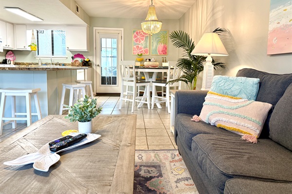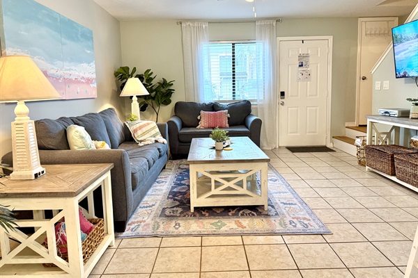 Relax in the living room with our ROKU TV. Beach towels are available for your use - just toss them into the beach wagon on your way out!